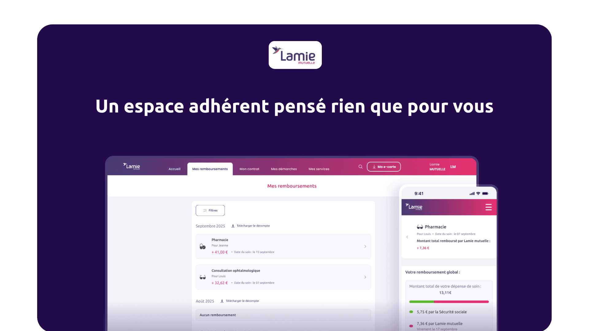 Gérez facilement votre santé au quotidien : suivez vos remboursements, effectuez vos démarches et accédez à votre carte de tiers payant, directement depuis l’application.